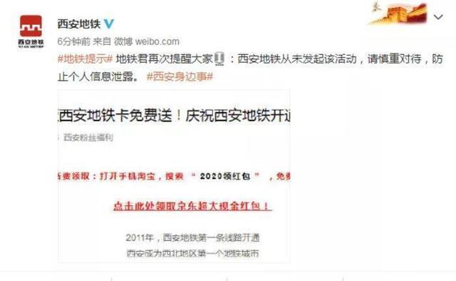 6月4日,西安地鐵收到了不少市民乘客詢問(wèn),是否發(fā)起了“慶祝西安地鐵開(kāi)通9周年,限量版西安地鐵卡免費(fèi)送”活動(dòng)。對(duì)此,西安地鐵溫馨提醒,地鐵從未發(fā)起過(guò)該活動(dòng),請(qǐng)市民慎重對(duì)待,防止個(gè)人信息泄露。