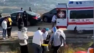 視頻畫(huà)面顯示,數(shù)人用擔(dān)架將一人抬上路邊的救護(hù)車(chē)。