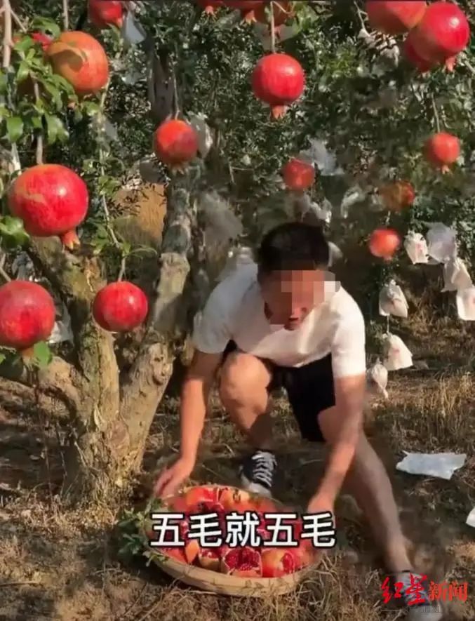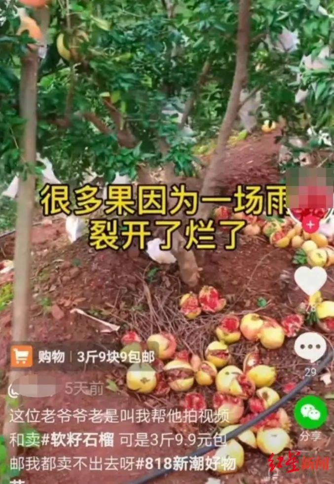 在一段短視頻中,一名80多歲的老大爺頭發(fā)花白,挑著兩桶水步履蹣跚。畫面配文寫道:“很多石榴都爛了,不如爛在地里當肥料了。”