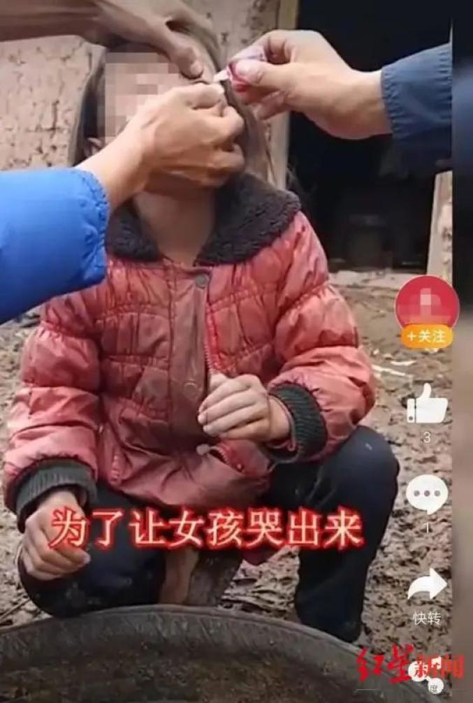 △“韓文團隊”采用滴眼藥水、掐孩子等手段,人為制造女孩流淚場面