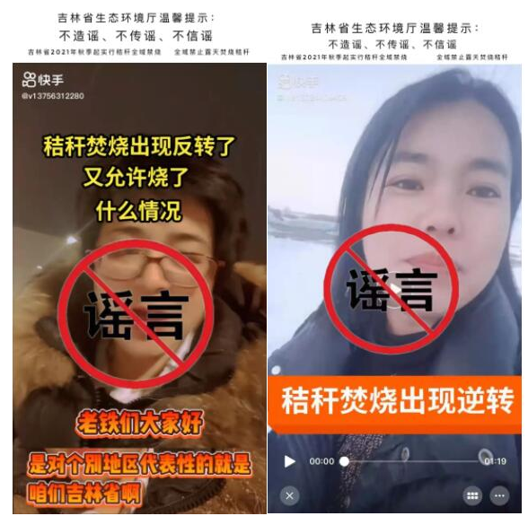 近日,“快手”平臺上出現(xiàn)兩條“秸稈焚燒出現(xiàn)反轉(zhuǎn)、逆轉(zhuǎn)”的視頻,屬于虛假信息。