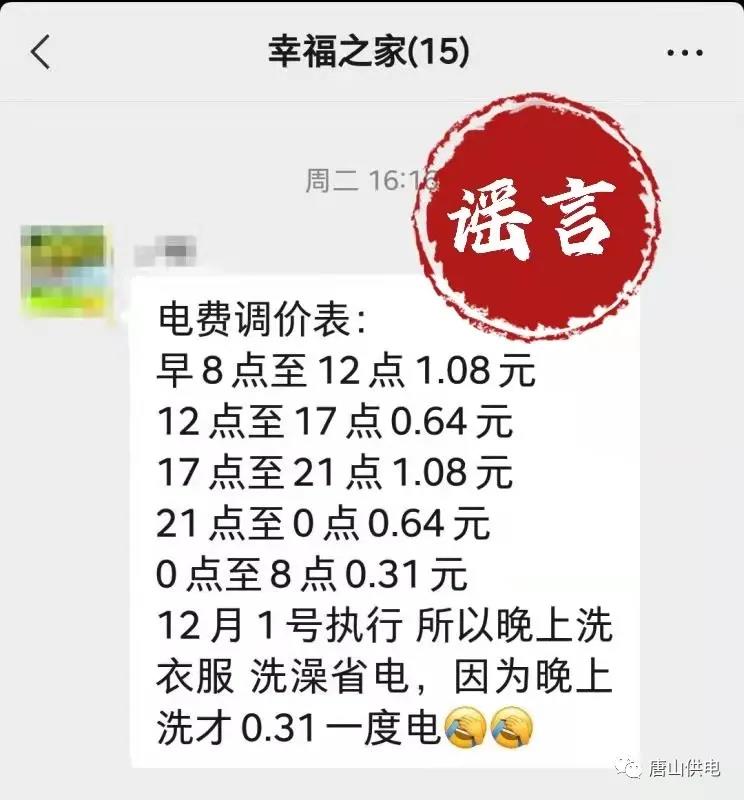 近日,網(wǎng)傳一張電費(fèi)調(diào)價(jià)表,稱“唐山居民用電價(jià)格將進(jìn)行調(diào)整,12月1日起正式執(zhí)行”。