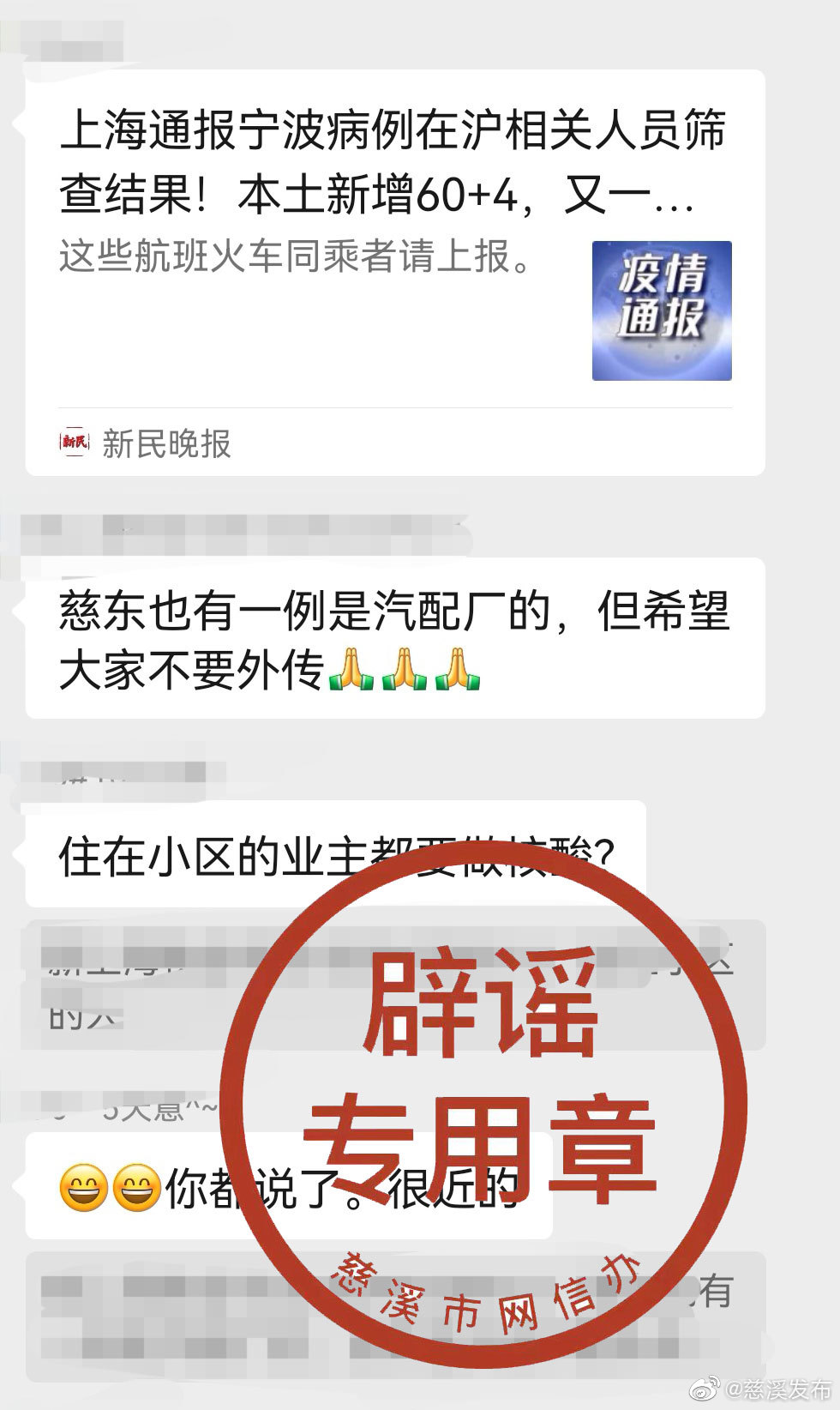 目前,慈溪市無新型冠狀病毒陽性病例及無癥狀感染者,請(qǐng)大家不信謠不傳謠。 ???