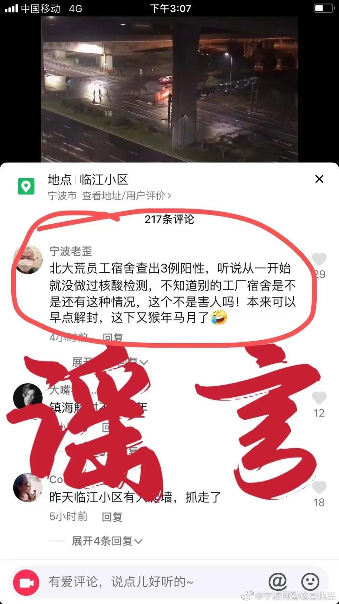 近日,有網(wǎng)民發(fā)短視頻稱“寧波鎮(zhèn)海區(qū)某員工宿舍查出三例陽(yáng)性病例……”等,經(jīng)向有關(guān)部門核實(shí),該內(nèi)容為不實(shí)信息。