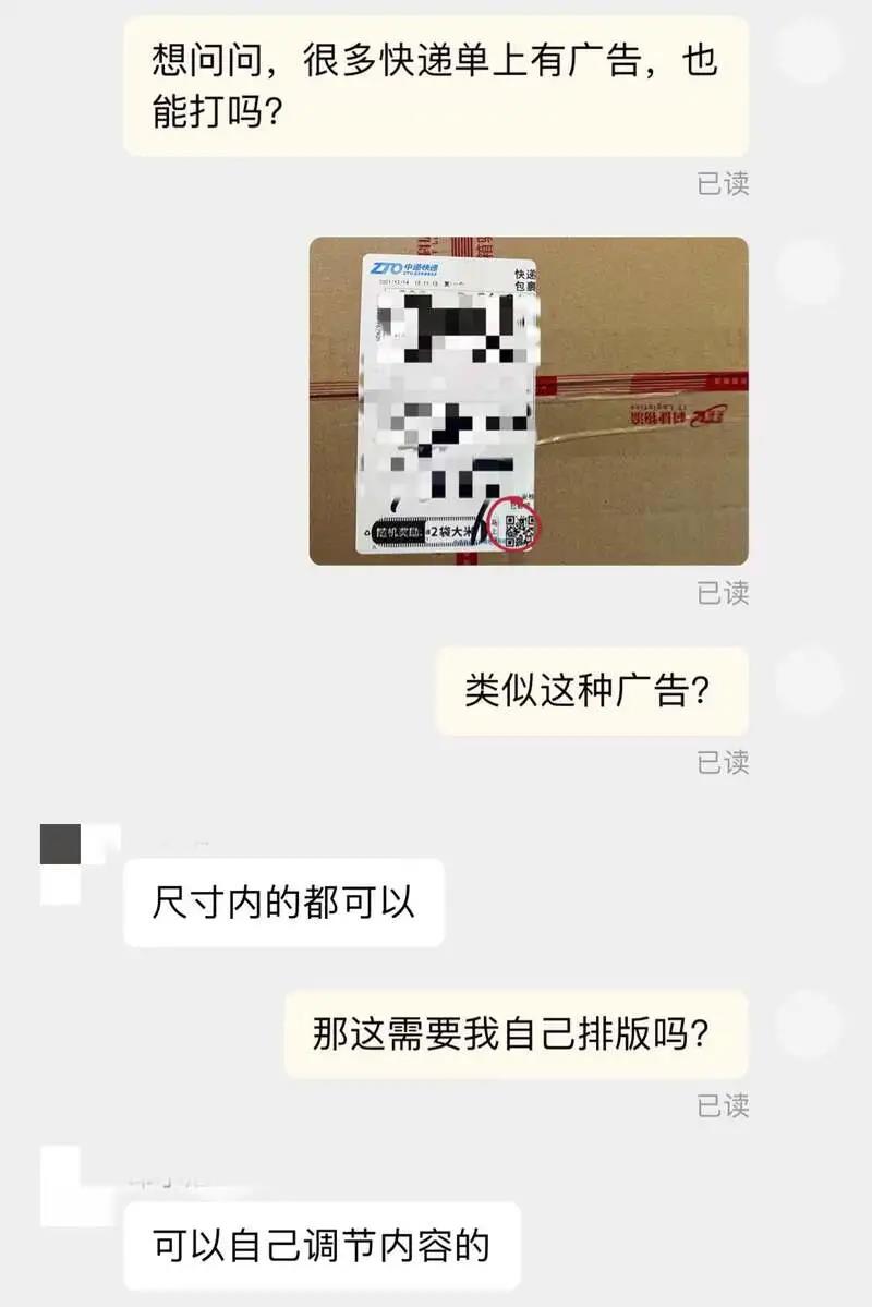“廣告公司提供打包服務(wù),除了快遞單,也有其他渠道的推廣。但具體怎么在快遞單上打廣告,我們不很清楚,而且廣告公司投放的渠道很多,沒法統(tǒng)計(jì)‘掃一掃’開卡的結(jié)果?!辟Q(mào)易公司工作人員說道。