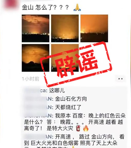 近日,有人在社交平臺發(fā)布圖片稱“上海金山石化方向天都燒紅了”“發(fā)生特大火災(zāi)”。經(jīng)核實,以上消息不實!