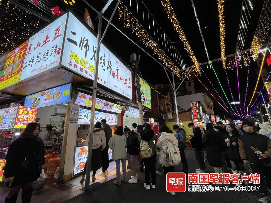 當(dāng)晚記者看到,許多店鋪前依舊人氣不減、熱鬧非凡。