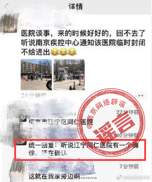 1月13日,網(wǎng)傳消息稱“南京江寧區(qū)同仁醫(yī)院有一護(hù)士確診”“祿口新城保利天地小區(qū)發(fā)現(xiàn)新冠陽性一例”“醫(yī)院護(hù)士吃了帶新冠病毒的火龍果”。經(jīng)江寧區(qū)新冠肺炎疫情聯(lián)防聯(lián)控工作指揮部核實(shí),網(wǎng)傳消息不實(shí)!