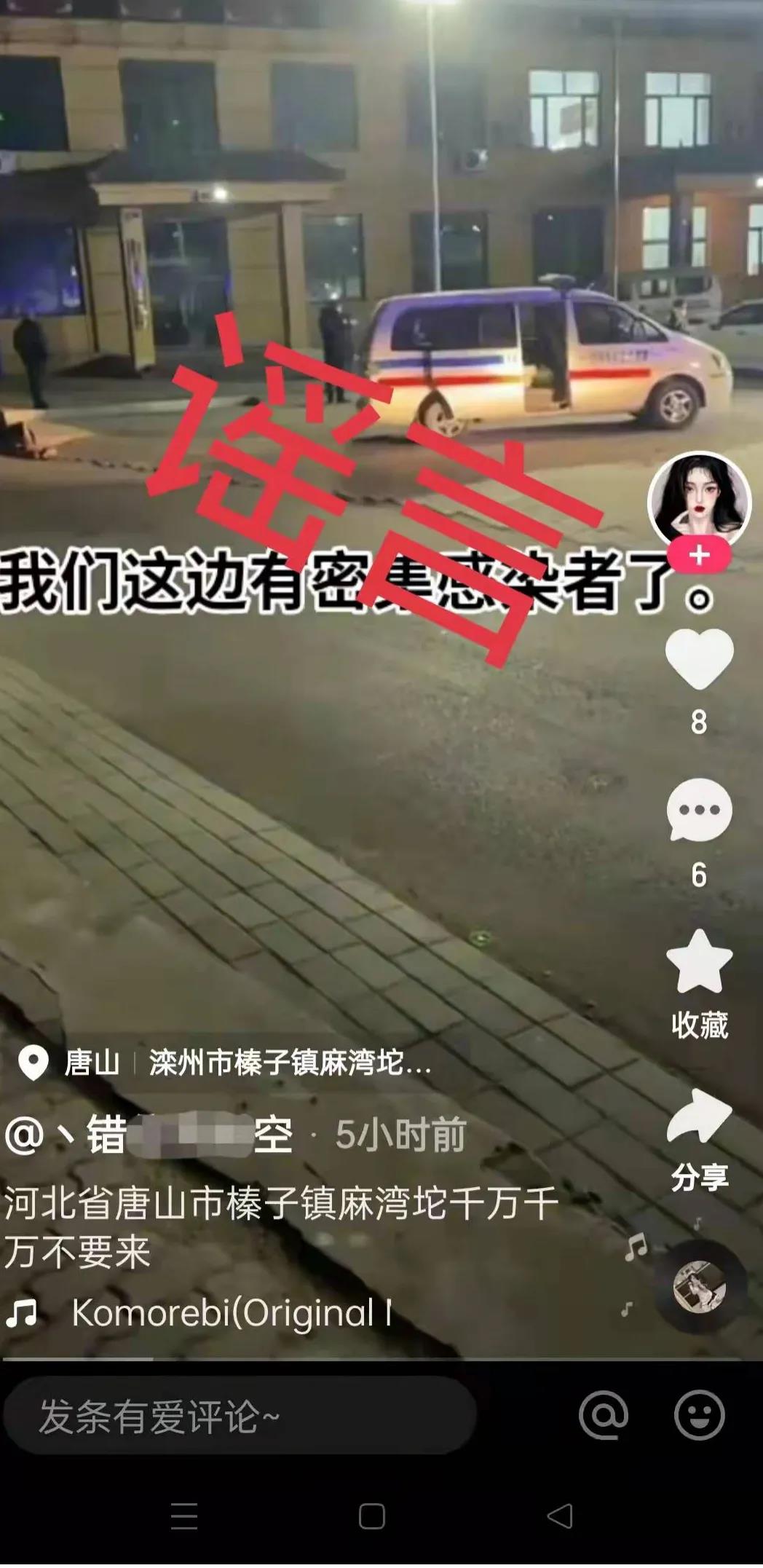 1月13日,灤州市榛子鎮(zhèn)麻灣坨村有網(wǎng)民在快手發(fā)布視頻,聲稱“我們這邊有密集感染者了,請(qǐng)千萬(wàn)不要來(lái)”,經(jīng)與有關(guān)部門(mén)核實(shí),此信息為不實(shí)信息。