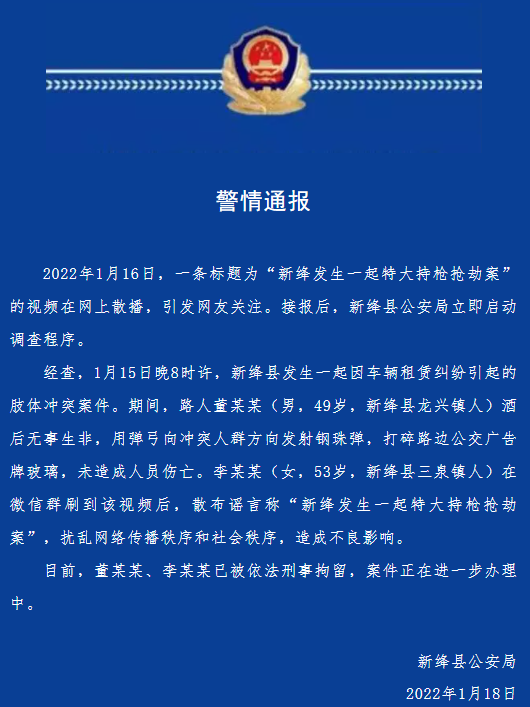 近日,一條題為“新絳發(fā)生一起特大持槍搶劫案”的視頻在社交平臺上傳播。