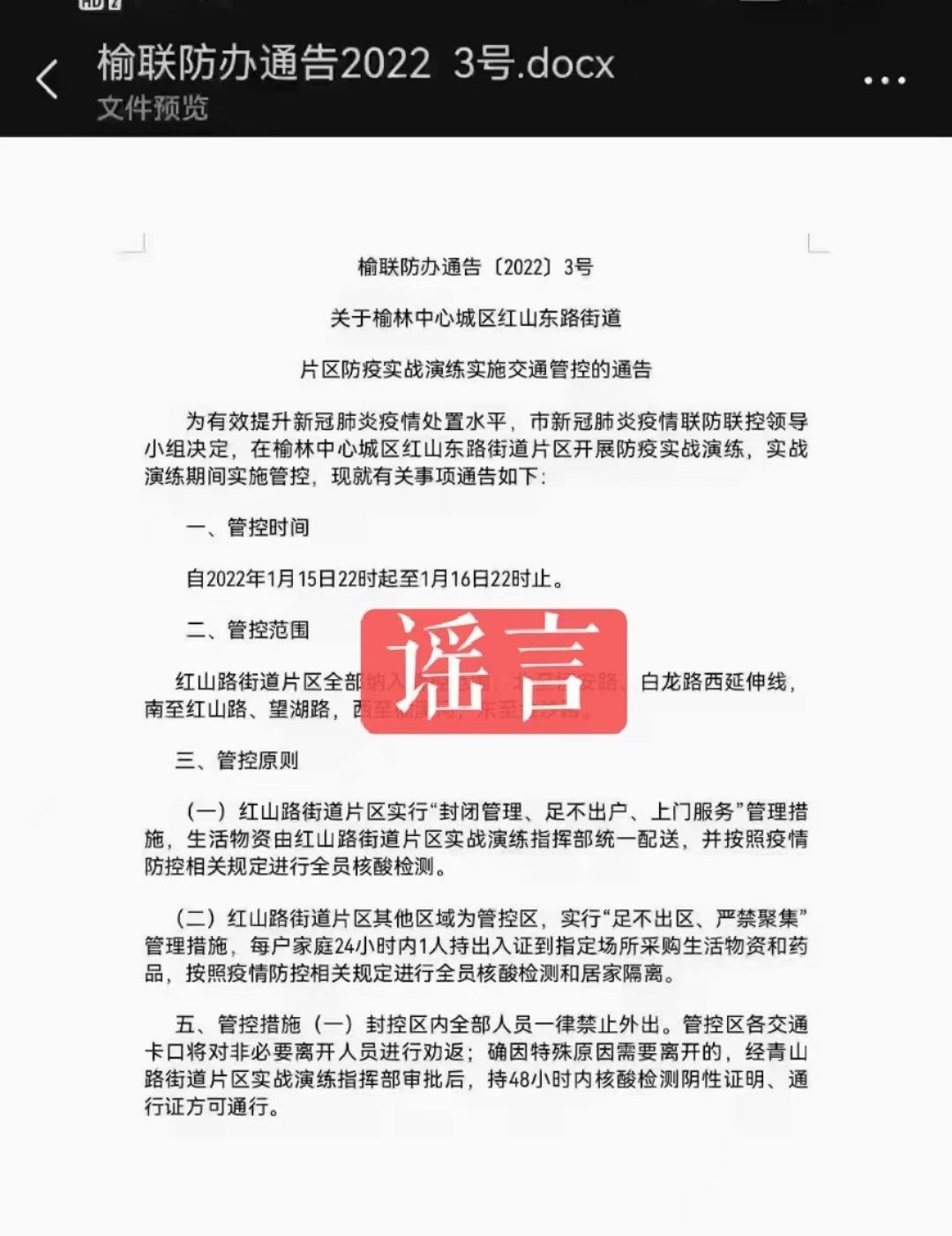 1月14日,榆陽多個(gè)微信群里出現(xiàn)“關(guān)于榆林中心城區(qū)紅山東路街道片區(qū)防疫實(shí)戰(zhàn)演練實(shí)施交通管制的通告”截圖圖片,公安榆陽分局經(jīng)與市區(qū)衛(wèi)健等部門核實(shí),該圖片所傳內(nèi)容為虛假信息。該虛假信息的傳播引發(fā)市民的廣泛關(guān)注和不同程度的恐慌。公安榆陽分局很快將涉嫌編造、散布虛假信息的高某查獲。 經(jīng)調(diào)查,1月13日,高某在榆陽區(qū)膚施路用手機(jī)編造了一張名為“榆聯(lián)防辦通告(2022)3號(hào)”《關(guān)于榆林中心城區(qū)紅山東路街道片區(qū)防疫實(shí)戰(zhàn)演練實(shí)施交通管制的通告》的虛假通告。又將該虛假通告通過微信轉(zhuǎn)發(fā)給其同事,隨后在多個(gè)微信群里傳播。1月16日,高某因散布謠言故意擾亂公共秩序被依法行政拘留十日。