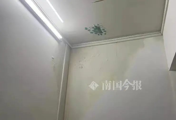△樓下的郵政公司天花板和墻壁均有漏水、滲水痕跡