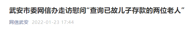 記者注意到,武安網(wǎng)信辦曾兩次發(fā)文公布老人查詢已故兒子存款進展: