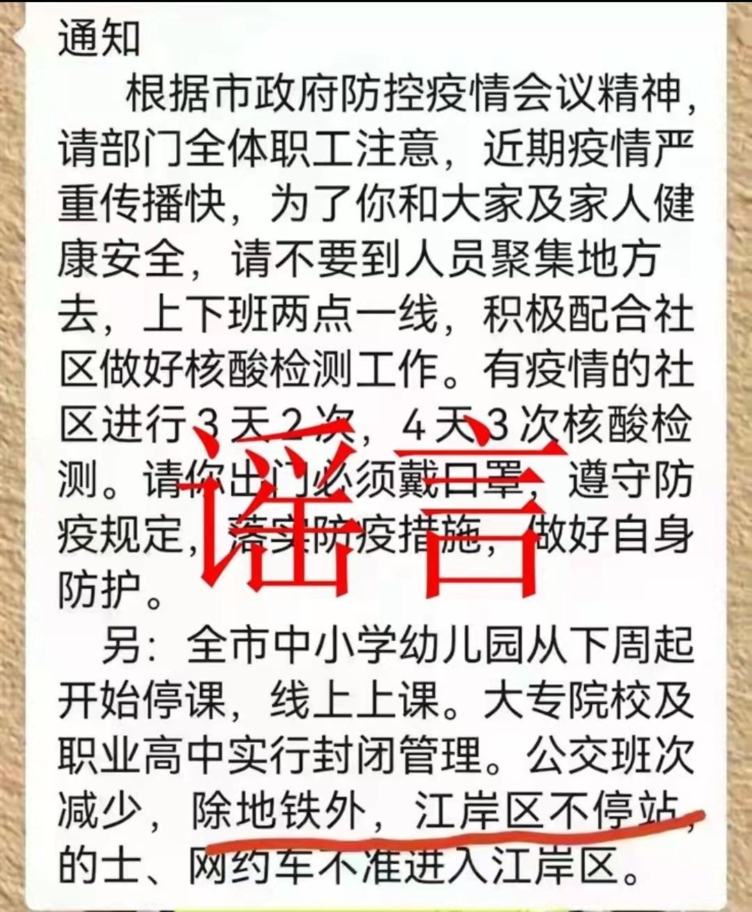 3月4日晚,關(guān)于“江岸區(qū)凌晨封區(qū),只進不出”和“公交班次減少,除地鐵外,江岸區(qū)不停站,的士、網(wǎng)約車不準進入江岸區(qū)”的消息在微信群及QQ群流傳,引起武漢市民的猜測。