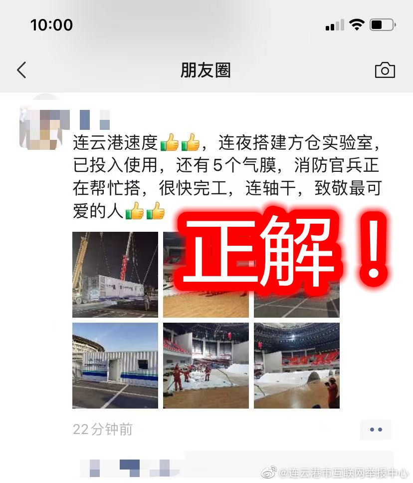 3月5日晚,微信群圈有人討論“連云港體育中心建方艙醫(yī)院了”。經(jīng)與權(quán)威部門核實確認,連云港市體育中心的設施是“核酸檢測實驗室”,并非“方艙醫(yī)院”。