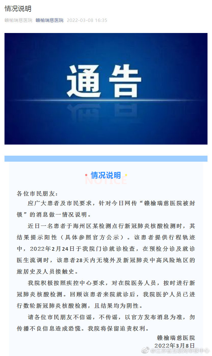連云港贛榆瑞慈醫(yī)院針對(duì)網(wǎng)傳謠言消息發(fā)布情況說明: ???