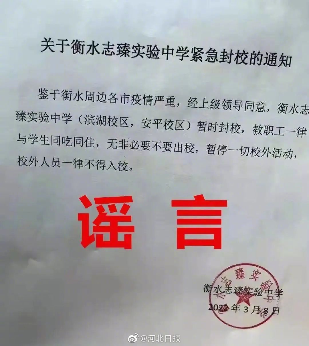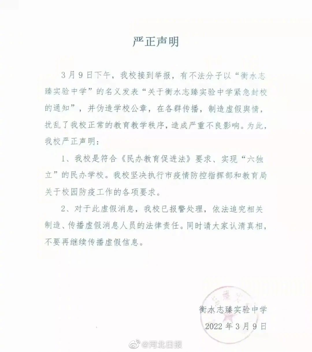 網(wǎng)傳衡水志臻實(shí)驗(yàn)中學(xué)緊急封校系謠言,衡水志臻實(shí)驗(yàn)中學(xué)發(fā)布嚴(yán)正聲明↓↓↓