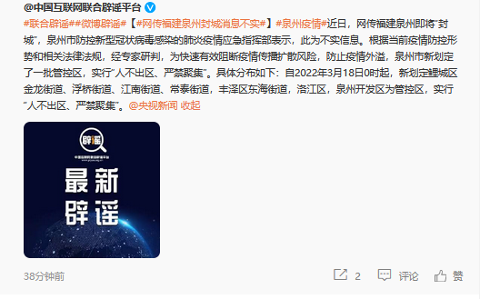 近日,網(wǎng)傳福建泉州即將“封城”,泉州市防控新型冠狀病毒感染的肺炎疫情應急指揮部表示,此為不實信息。
