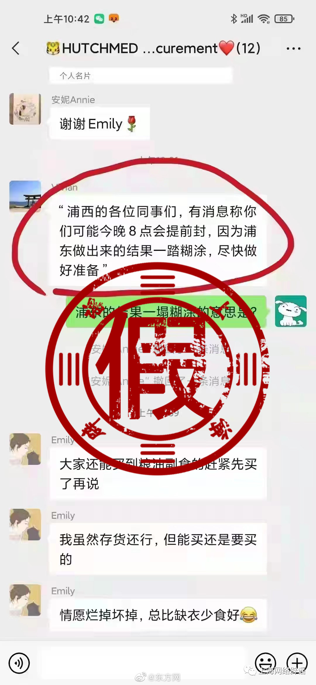 此外,還有傳言說(shuō),上海明天將開(kāi)始最新的封控措施。包括,要求垃圾暫不分類,居民統(tǒng)一放在樓道大門邊的綠化帶中,由物業(yè)統(tǒng)一清理收走;所有車輛除有通行證的除外,一律不得駛上馬路,違者將被公安扣車;所有藥店、商店全部關(guān)門;大型超市全部關(guān)閉,由政府征用,統(tǒng)一調(diào)配等。上海辟謠平臺(tái)從權(quán)威部門獲悉,此消息也不實(shí)。