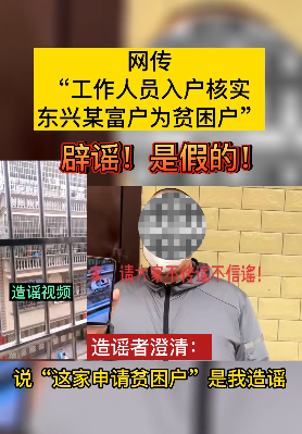 造謠者表示,網(wǎng)傳“這家申請貧困戶”的視頻是其造謠引起大家誤會,在此向大家道歉,也向這戶人家道歉。希望大家引以為戒、不傳謠不信謠?!?/p>