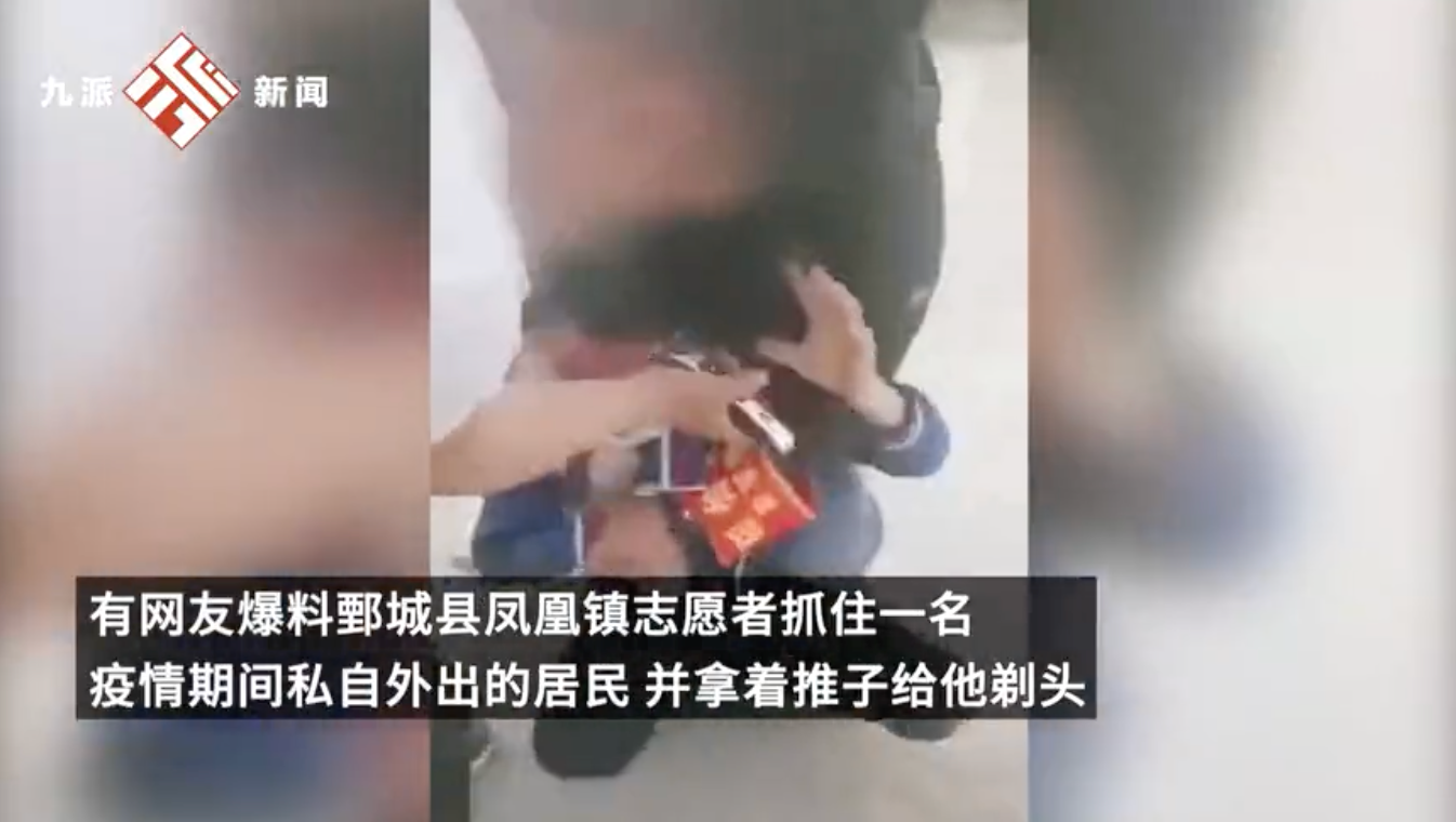 “志愿者抓住私自外出的居民后剃頭”的視頻
