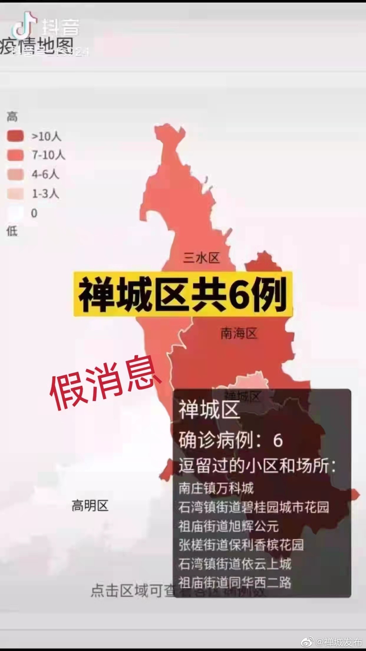 近日,“禪城有6例病例”的“疫情地圖”,以及“路過扶西批發(fā)市場變黃碼”的兩條消息在網(wǎng)絡上被廣泛傳播。禪城區(qū)衛(wèi)生健康局向公眾辟謠,這兩條消息均是謠言!
