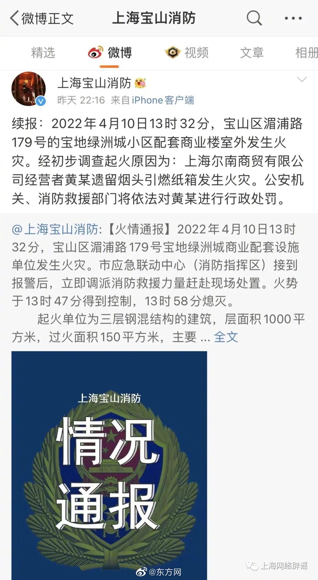 近日,微信圈群流傳寶山區(qū)某場(chǎng)所發(fā)生火災(zāi)的相關(guān)圖片,不少網(wǎng)友稱該地點(diǎn)為存放蔬菜物資的倉(cāng)庫(kù),“估計(jì)庫(kù)存對(duì)不上了,一不做二不休,直接放火燒倉(cāng)庫(kù)”。對(duì)此次火災(zāi),4月10日,上海寶山區(qū)消防救援支隊(duì)在官方微博@上海寶山消防 發(fā)布“火情通報(bào)”。