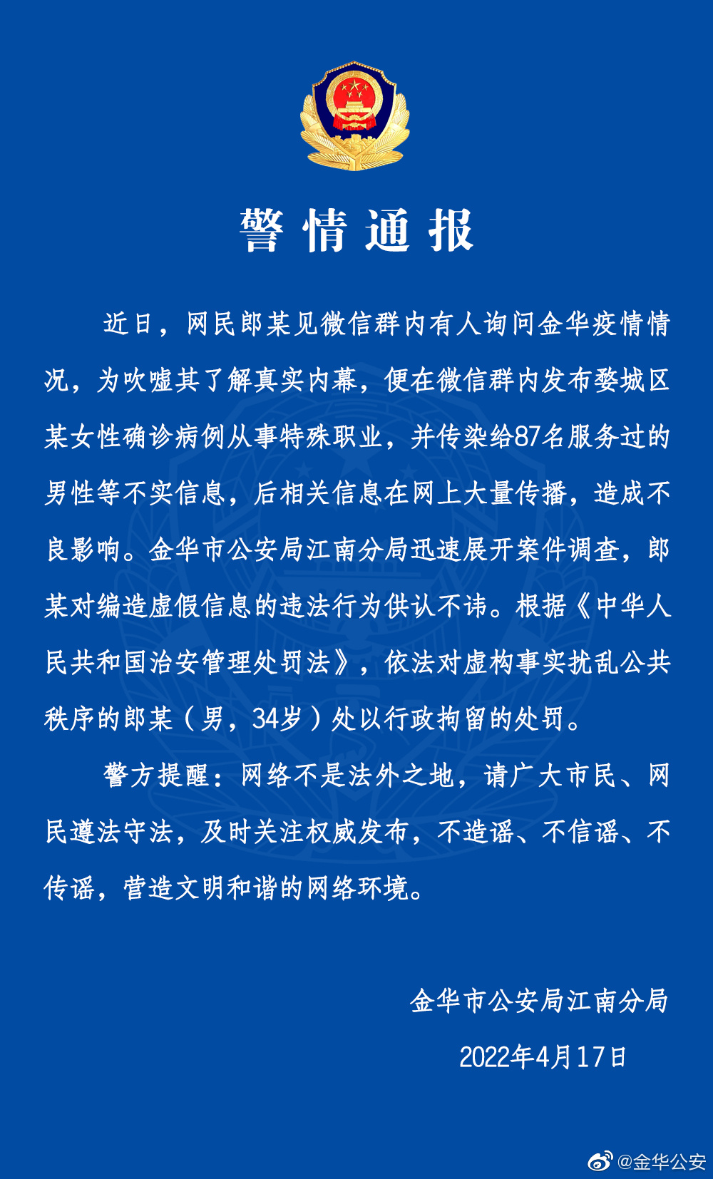 來源: 金華公安發(fā)布時間: 2022-04-18 15:18責(zé)任編輯: 王敏