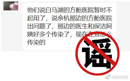 4月21日,有消息稱余杭設有方艙醫(yī)院且出現(xiàn)多人傳染。據(jù)余杭區(qū)疫情防控辦和相關部門反饋:余杭區(qū)內未設置方艙醫(yī)院,目前也未發(fā)生醫(yī)務人員、保潔人員感染的情況。