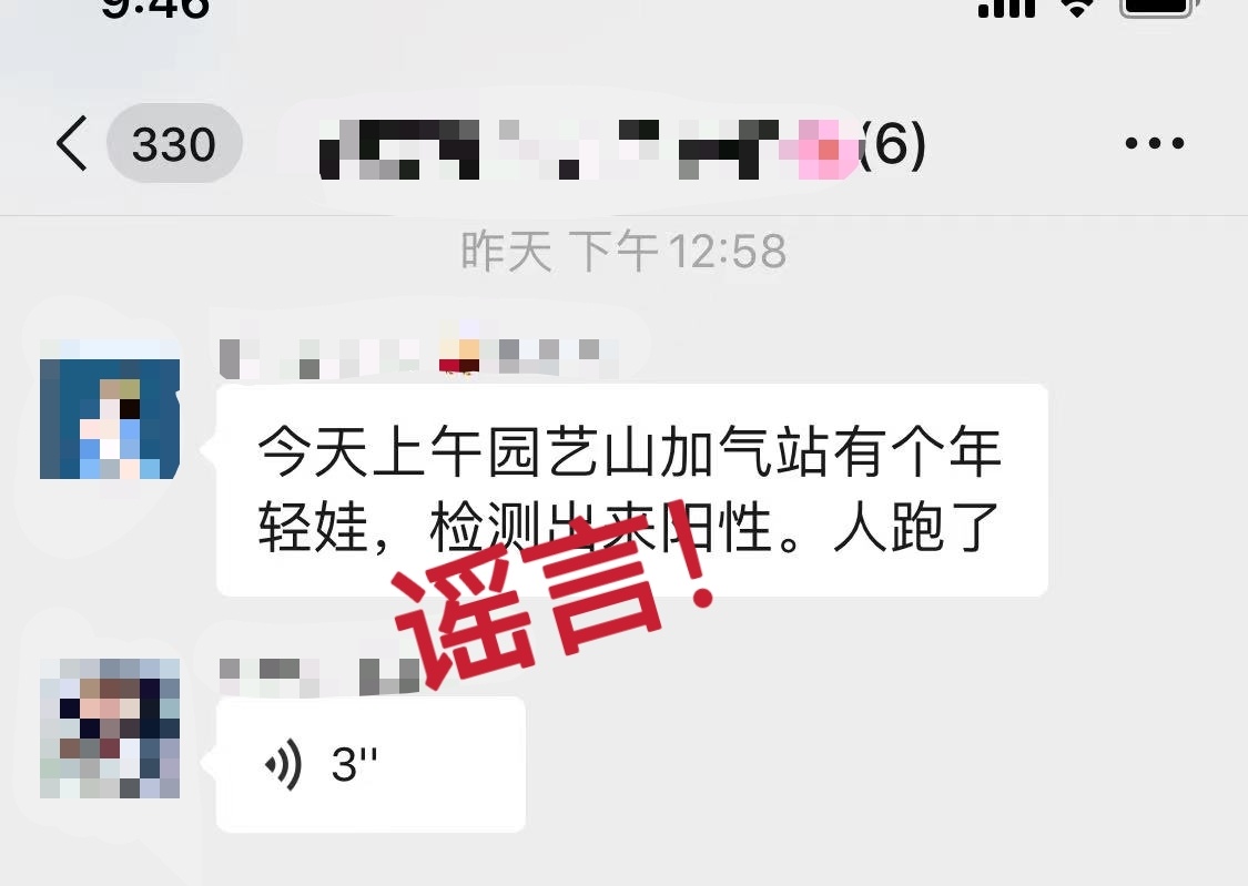 2022年4月27日,綿陽網(wǎng)警收到網(wǎng)友舉報,稱在微信群看到網(wǎng)友在聊天中說“27日園藝山加氣站有人檢測出陽性并逃逸”,目前該信息引發(fā)網(wǎng)友恐慌,希望網(wǎng)警核實信息真假。綿陽網(wǎng)警經(jīng)向疫情防控指揮部查證,證實此信息為不實謠言。網(wǎng)警提醒:請廣大網(wǎng)民遵守相關(guān)法律法規(guī),不要隨意在網(wǎng)上發(fā)布、傳播未經(jīng)證實的內(nèi)容。對于編造、傳播、散布謠言,擾亂公共秩序的違法行為,公安機(jī)關(guān)將依法查處。