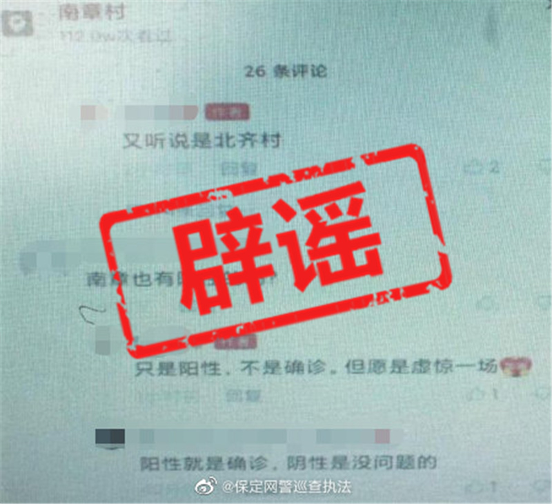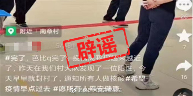 4月26日上午,保定市競(jìng)秀網(wǎng)警在工作巡查中發(fā)現(xiàn)“完了,芭比q完了,疫情離我們?cè)絹?lái)越近了,昨天就在我們村大隊(duì)發(fā)現(xiàn)了一位陽(yáng)性”、“只是陽(yáng)性、沒(méi)有確診”的信息在抖音平臺(tái)流傳擴(kuò)散。