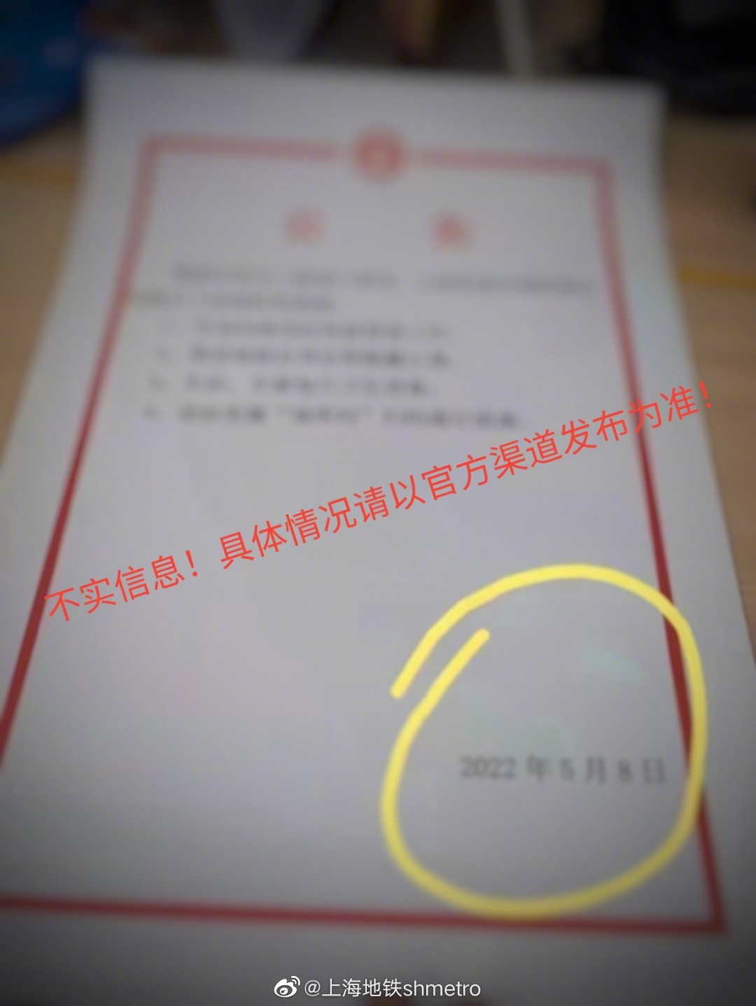近日,有網(wǎng)傳上海地鐵發(fā)布將于5月某日恢復運營的不實消息。在此聲明:目前,上海地鐵僅6號線(不含五蓮路、德平路、北洋涇路)和16號線維持運營,其他線路仍暫停運營。接下來,上海地鐵將根據(jù)疫情防控形勢及上級部署,積極準備恢復工作;一旦確定運營恢復日期,將第一時間通過官方渠道對外公布。 ???