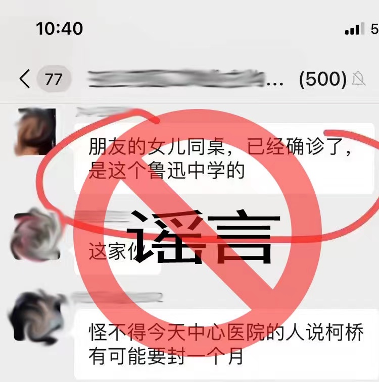 5月24日,有網友在微信群發(fā)布“中心醫(yī)院昨天檢出10個陽性”、“魯迅中學有學生確診”、“20多個初篩陽性”等信息引發(fā)關注。經核實,相關內容為謠言或不實信息。