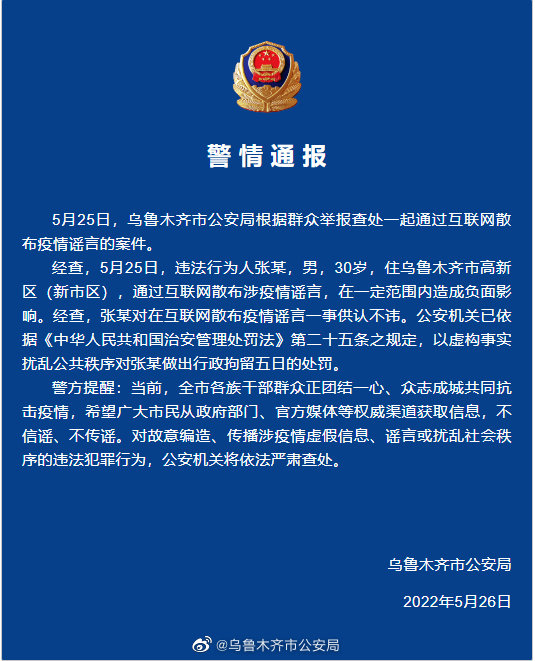 來源: @烏魯木齊市公安局發(fā)布時間: 2022-05-27 11:50責(zé)任編輯: 王敏