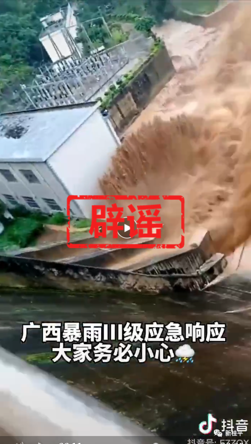 網(wǎng)上謠傳“金田水庫(kù)泄洪”視頻截圖