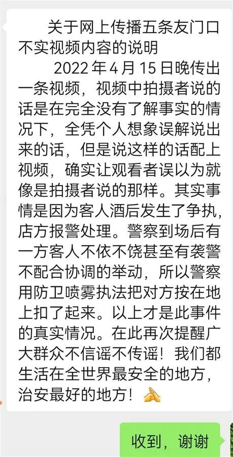 店家表示,事實(shí)上,當(dāng)時(shí)是客人酒后發(fā)生了爭(zhēng)執(zhí),他們隨即報(bào)警處理。民警到場(chǎng)后,有一方客人不依不饒甚至有不配合調(diào)查的舉動(dòng),民警將對(duì)方控制起來。