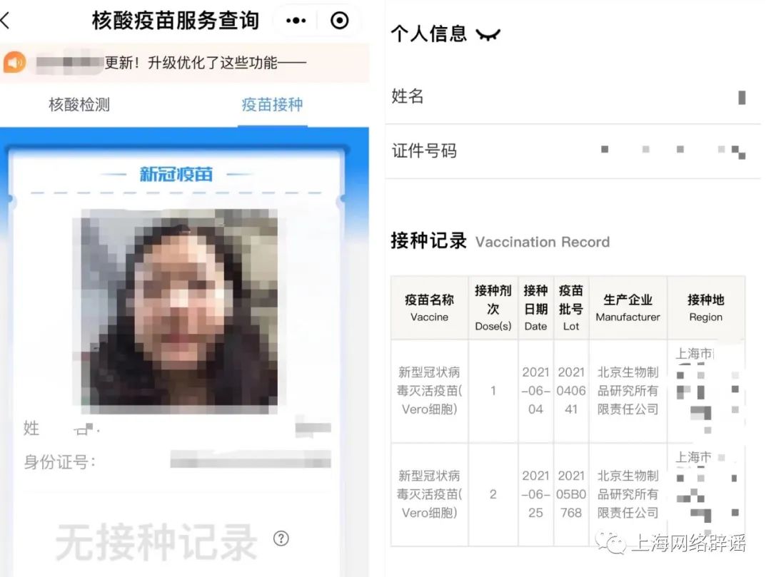 經(jīng)上海辟謠平臺核查,聊天記錄截屏與北方某地“健康寶”小程序的截屏高度相似。而記者測試后發(fā)現(xiàn),該查詢程序僅能查詢居住地或疫苗接種地為本地人士的疫苗接種信息,對非當(dāng)?shù)厝耸康牟樵儾挥柚С帧?/p>