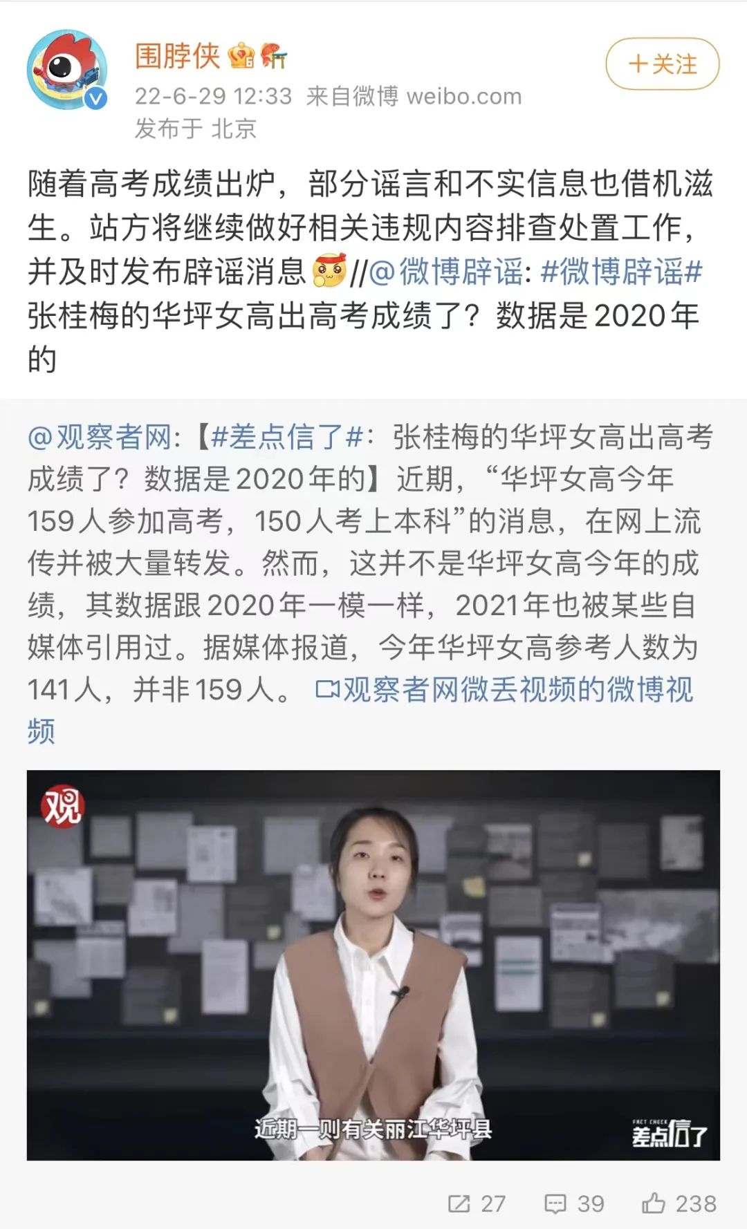 華坪女高高考人數(shù)實為141人