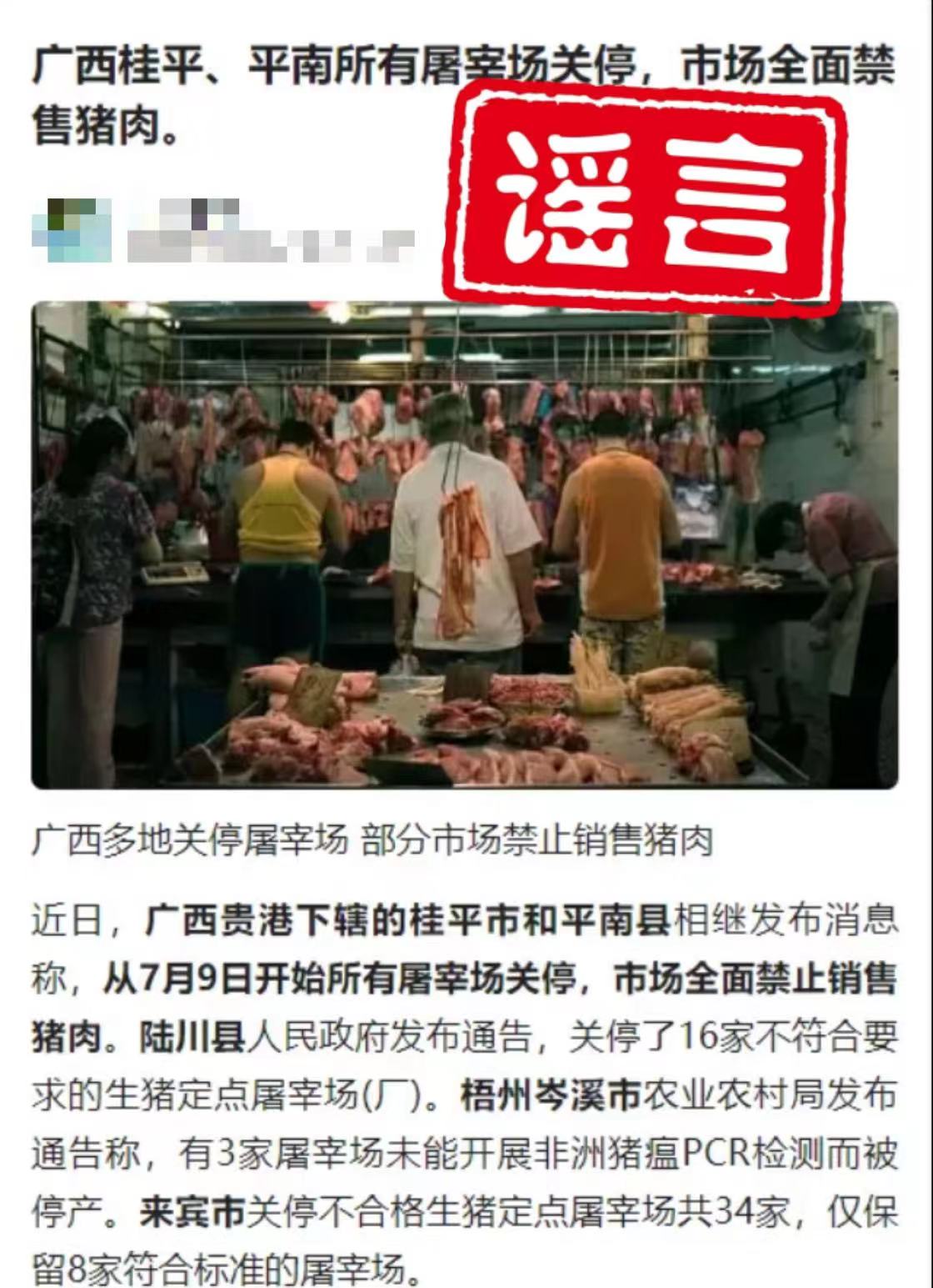 近日,網(wǎng)傳“廣西桂平、平南所有屠宰場關(guān)停、市場全面禁售豬肉”,桂平市農(nóng)業(yè)農(nóng)村局及平南縣農(nóng)業(yè)農(nóng)村局表示此說法屬謠言。目前兩地定點(diǎn)屠宰場正常運(yùn)營,市場豬肉供應(yīng)充足、價(jià)格平穩(wěn)。