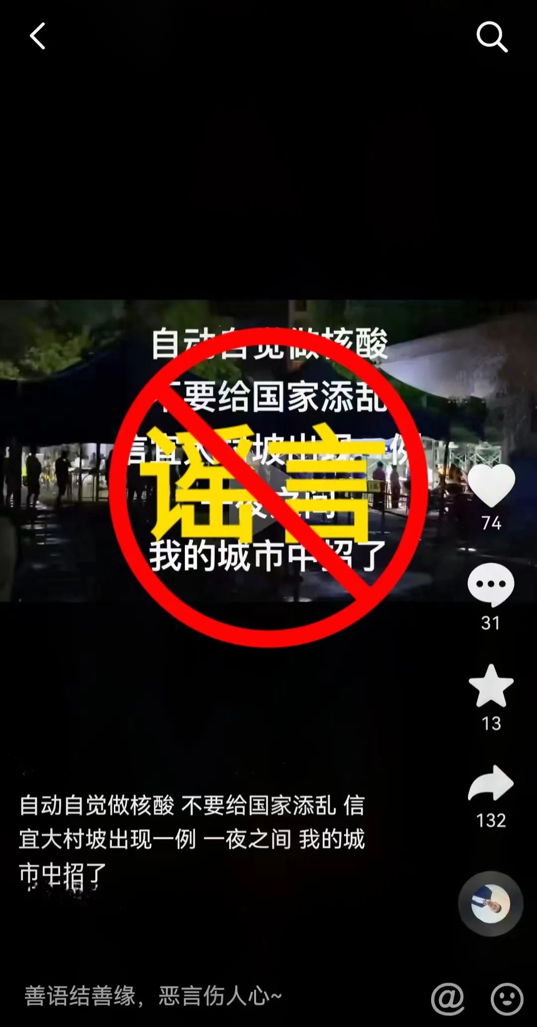 8月10日凌晨,該局在工作中發(fā)現(xiàn),有人通過抖音平臺發(fā)布了一段人員排隊做核酸的視頻,并配上文字稱信宜市大村坡出現(xiàn)一例新冠肺炎病例。該視頻在網(wǎng)上迅速被關(guān)注、轉(zhuǎn)發(fā)。經(jīng)向有關(guān)部門了解確認(rèn),我市目前并未出現(xiàn)新冠肺炎病例。
