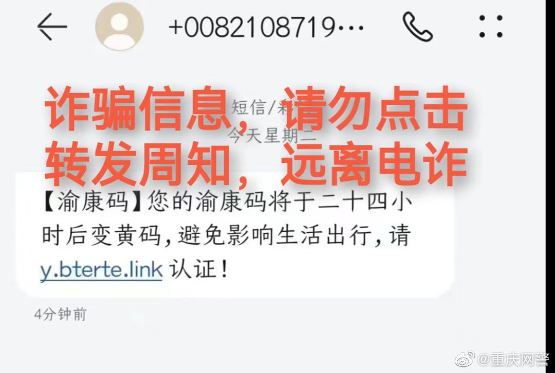 近日,有重慶市民收到短信,以渝康碼將變黃為由,要求點(diǎn)擊短信鏈接進(jìn)行認(rèn)證,綁定所謂“電子醫(yī)??ā?。#網(wǎng)警提醒# 該短信是詐騙短信,其鏈接打開(kāi)網(wǎng)站是釣魚(yú)網(wǎng)站,切勿隨意點(diǎn)擊鏈接,輸入任何個(gè)人信息。涉疫信息請(qǐng)關(guān)注政府官方渠道公告或者電話(huà)咨詢(xún)所在社區(qū)居委會(huì)。