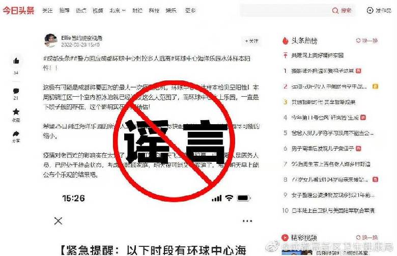 據(jù)@成都高新區(qū)衛(wèi)生健康局 發(fā)布的消息,8月28日,有網(wǎng)友在多個微信群和公開平臺發(fā)布信息稱,成都環(huán)球中心海洋樂園水體樣本陽性,引發(fā)社會關注。此消息為不實信息。經疾控部門核實,環(huán)境檢測結果均為陰性。請廣大網(wǎng)友不造謠、不信謠、不傳謠!
