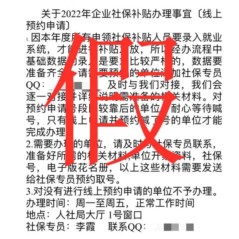 近期,有企業(yè)收到名為《關(guān)于2022年企業(yè)社保補貼辦理事宜(線上預(yù)約申請)》的郵件通知,發(fā)件人自稱社保專員,稱辦理社保補貼業(yè)務(wù)需線上預(yù)約取號否則不予辦理,并索要企業(yè)和員工的相關(guān)資料。