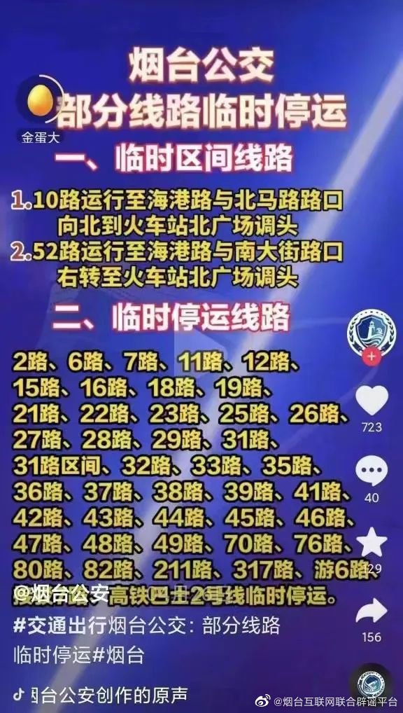 10月23日,一張“煙臺公交部分線路臨時停運”的抖音截圖在煙臺市民的微信群里流傳,引發(fā)市民關(guān)注。不少市民致電公交公司,詢問情況。