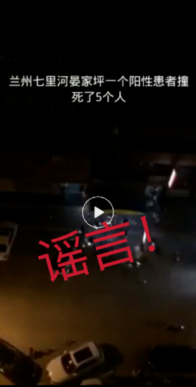 近日,在微信群和個(gè)別網(wǎng)絡(luò)平臺(tái)流傳“一陽(yáng)性患者開車撞死5個(gè)人…”的相關(guān)文字及視頻信息,經(jīng)核查該信息為不實(shí)信息,蘭州市未發(fā)生該事件。