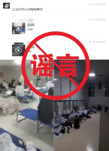 11月13日晚間開始,社交平臺出現(xiàn)重慶“石子山方艙醫(yī)院人滿為患,管理無序”的2條視頻+配文爆料,內(nèi)容分別為“后期入住市民因缺少床位,只能在大廳睡‘行軍床’,且無被褥,現(xiàn)場混亂引發(fā)市民不滿”“部分人員在公用衛(wèi)生間打地鋪睡覺”。記者從江北區(qū)委網(wǎng)信辦獲悉,相關(guān)信息系謠言!