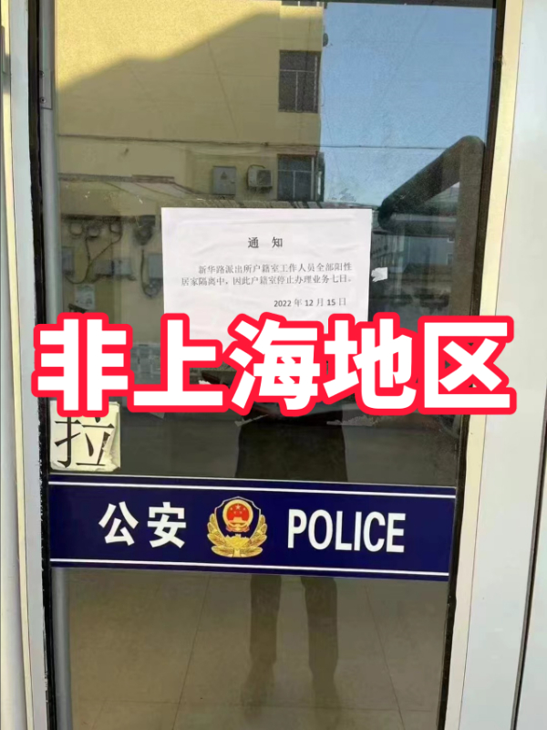 ??12月15日,一張“新華路派出所全陽致業(yè)務停辦7日”的圖片在上海市民的朋友圈流傳引發(fā)關注。圖片顯示,新華路派出所戶籍室工作人員全部陽性居家隔離中,因此戶籍室停止辦理業(yè)務七日。通知發(fā)布日期為12月15日。