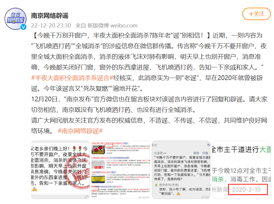 同時(shí),這條謠言還屬于“老謠新傳”。早在2020年疫情剛爆發(fā)時(shí),全國多地都出現(xiàn)過類似消息,但均被辟謠。