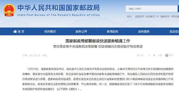 ??12月20日,國(guó)家郵政局再次發(fā)文,部署郵政快遞暢通工作: