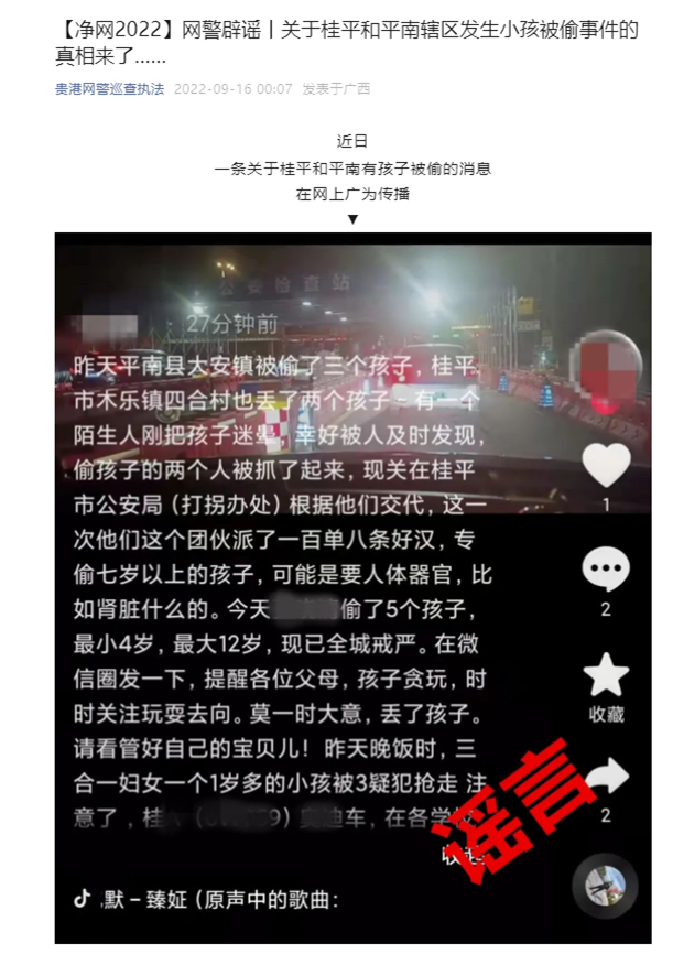 “貴港三名小孩被偷”網(wǎng)絡(luò)消息截圖